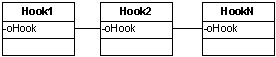 Figure 4. A chain of N objects linked together. Normally control passes from instances of Hook1 to Hook2 to Hook3, and so on, normally without any intervention from a controlling object.